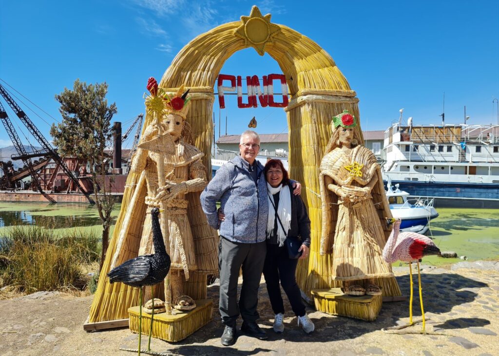 Desde Arequipa, tomamos un bus a Puno (7 horas de viaje). Puno está a 3.827 metros de altitud, y a Violeta le afectó el soroche (mal de altura). Nos alojamos en el *Ayma Hostel Puno* (75 soles la noche), donde echamos de menos la calefacción, ¡y dormimos con tres mantas!