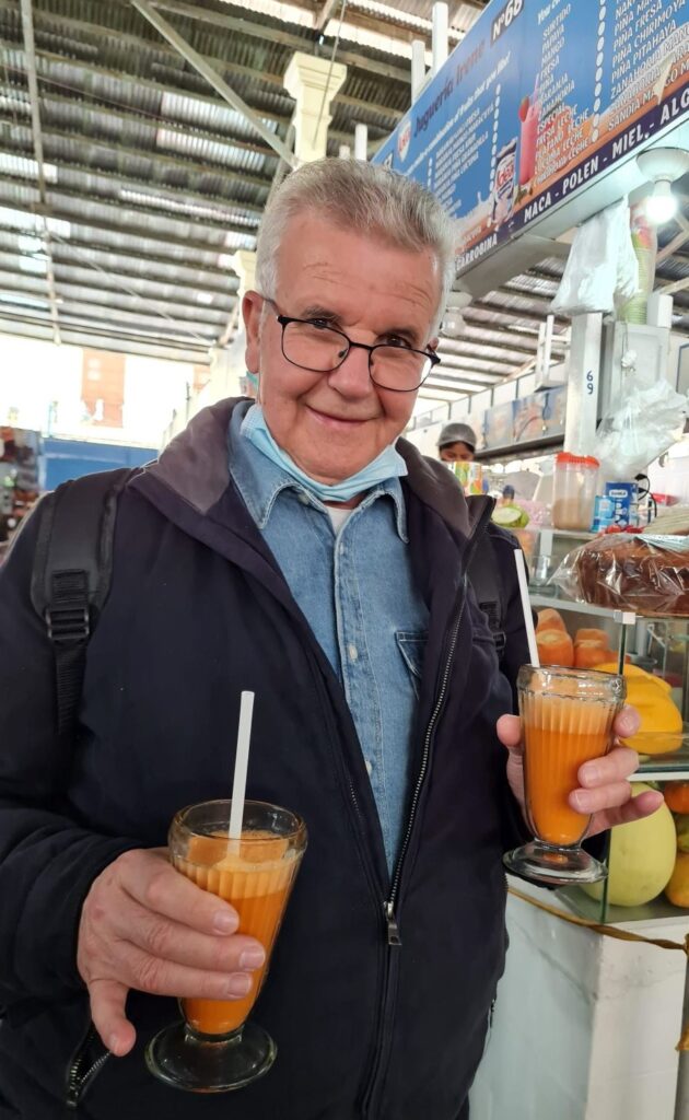 Visitamos el Mercado de San Pedro, un lugar que va más allá de lo común, ofreciendo una experiencia única donde se mezclan tradiciones culinarias, espirituales y medicinales. En sus pasillos encontramos una fusión de colores, aromas, sabores y productos locales que van desde frutas frescas hasta artesanías tradicionales. Nos tomamos un jugo de frutas con kion (jengibre) que nos supo a gloria y nos levantó el animo.