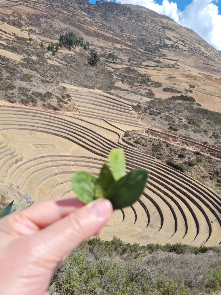 En una de las paradas del recorrido, el guía nos sorprendió con un pequeño gesto lleno de tradición: nos ofreció hojas de coca y nos pidió que les hiciéramos una foto, casi como quien presenta a un viejo amigo. Nos explicó que en la zona de los Andes se consumen desde siempre, ya sea mascándolas o en infusión. Contó que, tomadas así, ayudan a mitigar el soroche —ese mal de altura que a veces se empeña en amargar el viaje— y que también alivian el hambre, la sed, el dolor y el cansancio.