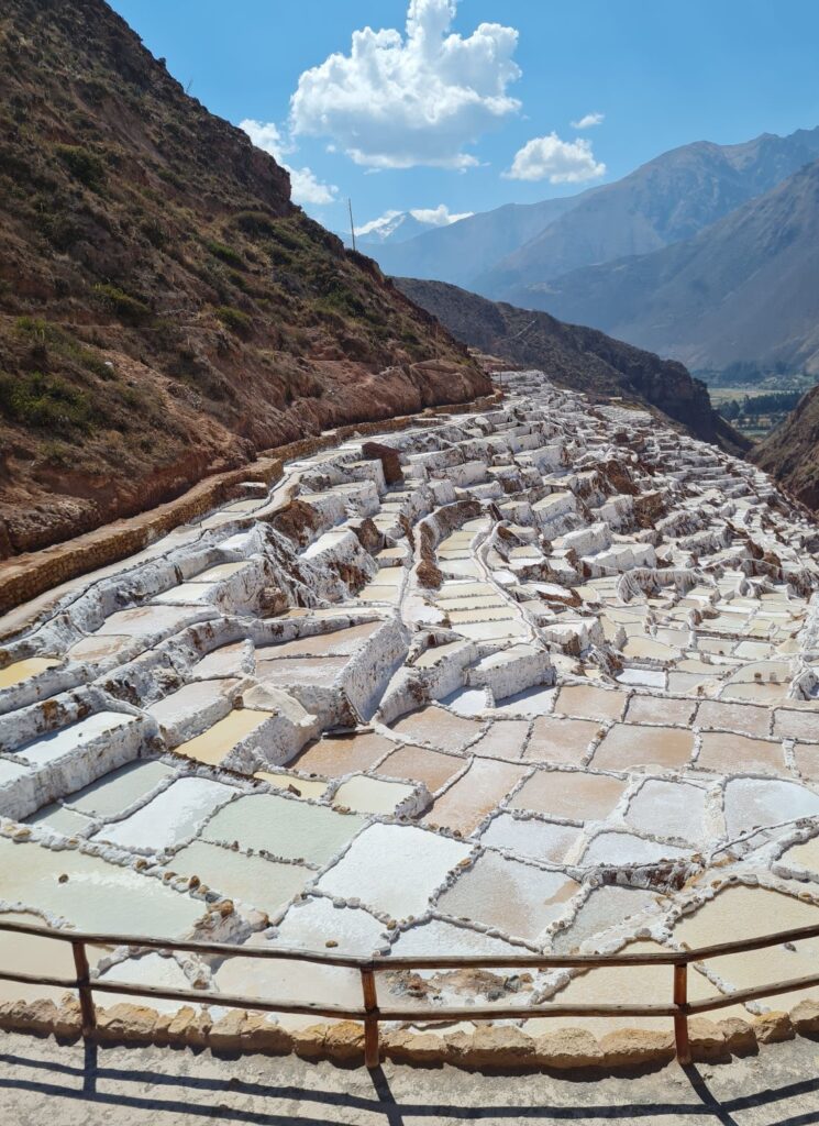 Las Salineras de Maras son una impresionante red de más de 3,000 pozos de sal excavados en una montaña, explotados desde la época preincaica para la extracción de sal por evaporación. Nos contaron que la sal de Maras se comercializa por sus beneficios para la salud.