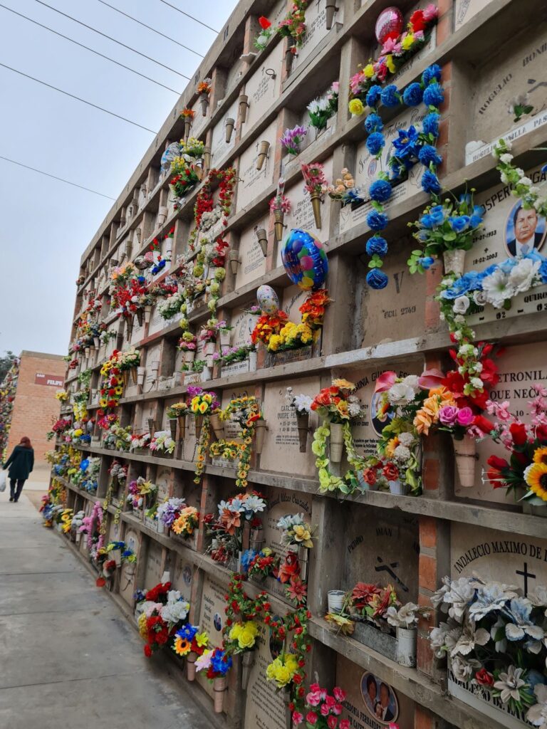 El segundo fue el Cementerio Padre Eterno porque allí descansa la madre de Violeta. Es un cementerio más moderno, también llamado «El Agustino». Fuimos con su hermana Doris y su sobrina Lorena; limpiaron y pusieron flores en el nicho y expresaron un sentido recuerdo por esa gran mujer que fue Hilda.