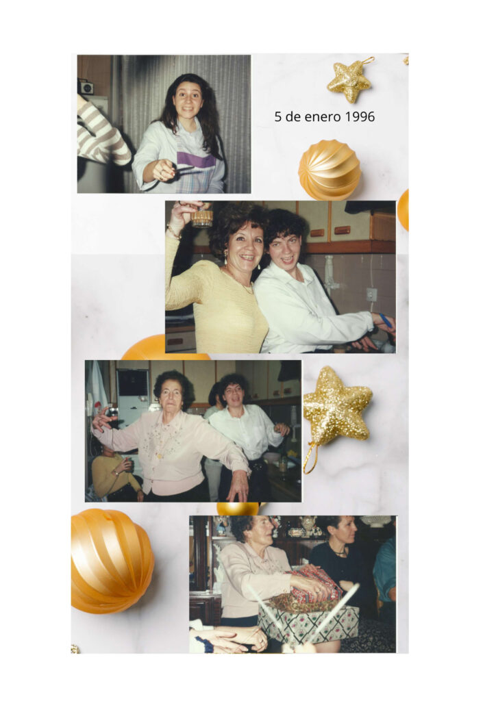 Desde que el tío Manolo se casó, la Nochebuena siempre se celebraba en casa de los abuelos, y la Nochevieja, en casa de los tíos Manolo y Antonia. Después cuando se casó la tía Carmen pasaban la Nochebuena con la familia del tío Luis. Fue entonces cuando la abuela me dijo, con esa mezcla de firmeza y ternura que la caracterizaba, que no importaba cómo nos organizáramos las demás fechas: ella quería reunirnos a todos al menos una vez. Y así, la noche de Reyes se convirtió en «su noche», en nuestra noche.