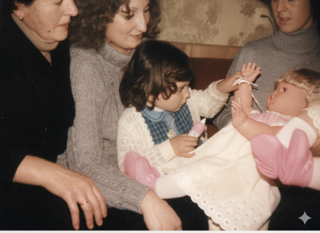 Recuerdo algunos Reyes muy anteriores a los que los demás recordáis. En Antequera, cuando era pequeña; especialmente una vez en que mi tío y sus amigos vinieron a tocar la guitarra y el acordeón a casa. Recuerdo que me regalaran un huevo duro, de los que yo misma vendía, cuando no teníamos nada. Pero más adelante también recuerdo que me regalaran una muñeca y su cuna.