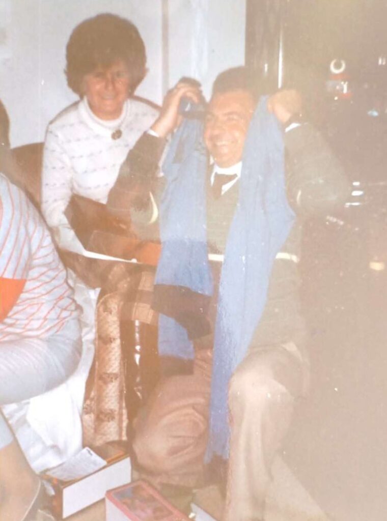 Recuerdo ir a comprar regalos con la abuela y que mandara al abuelo a por lo que le iba faltando a recados. Y en los días de reyes recuerdo ayudar a preparar todo antes de irme a trabajar y volver después para seguir ayudando, por lo que nunca pude ir a ver la cabalgata con mi marido y mi hijo. Pedro me llevaba en coche y allí hacía flanes para todos. Los abuelos compraban en Pedro Laborde y la abuela hacía sopa de pescado, pavo o cordero y ensaladilla rusa. Y yo ayudaba a todo ello, además de a recoger después.
